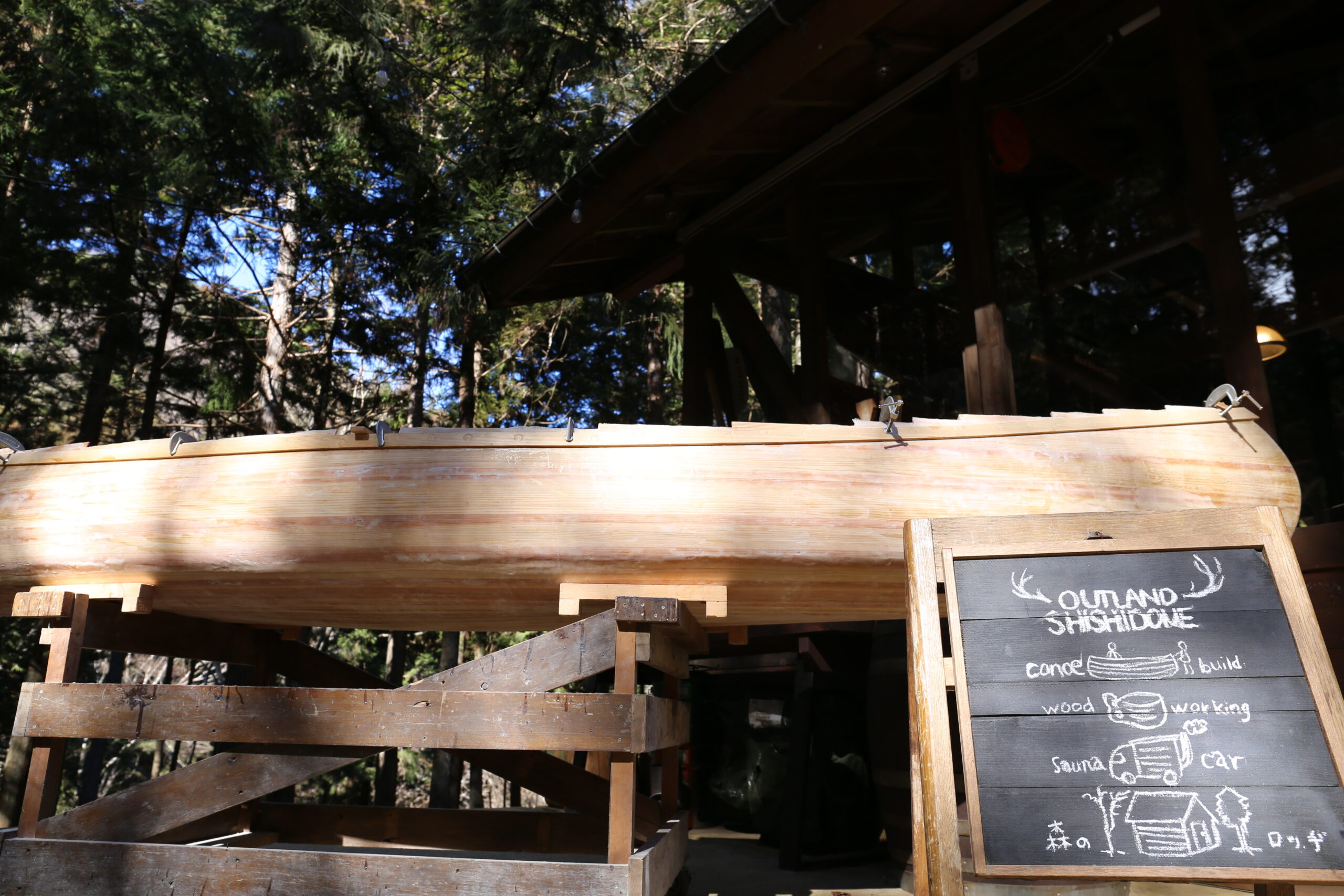 ロッヂに宿泊し、渓流でのサウナカー体験やボディーケアなど「森と水と人がつながる」様々なアクティビティを楽しめる。 カヌー工房では、各種木工体験も可能。 自然に囲まれた非日常を体験してみよう!!