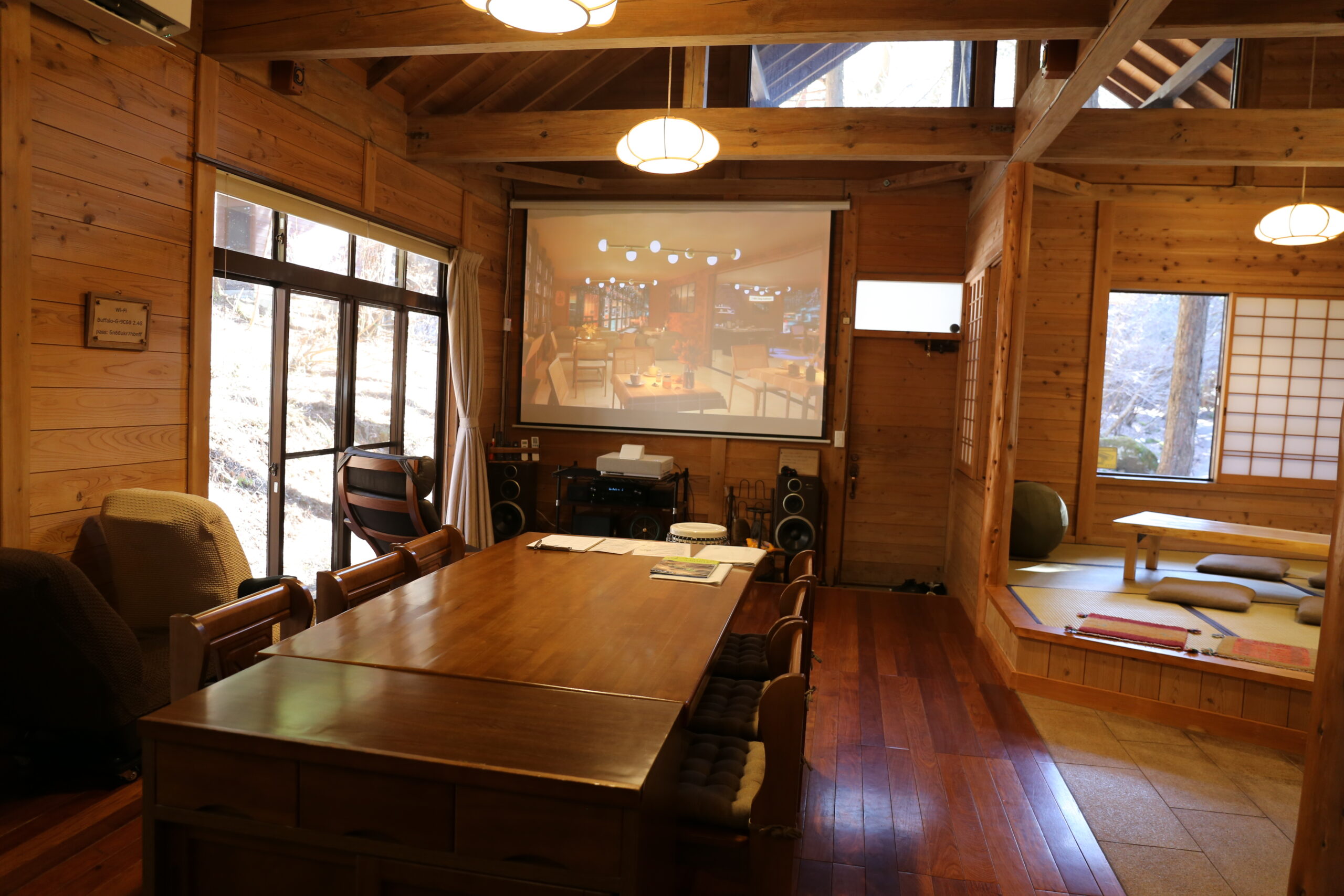 森と渓流に囲まれた宿泊施設で自然を満喫。サウナや木工体験も。