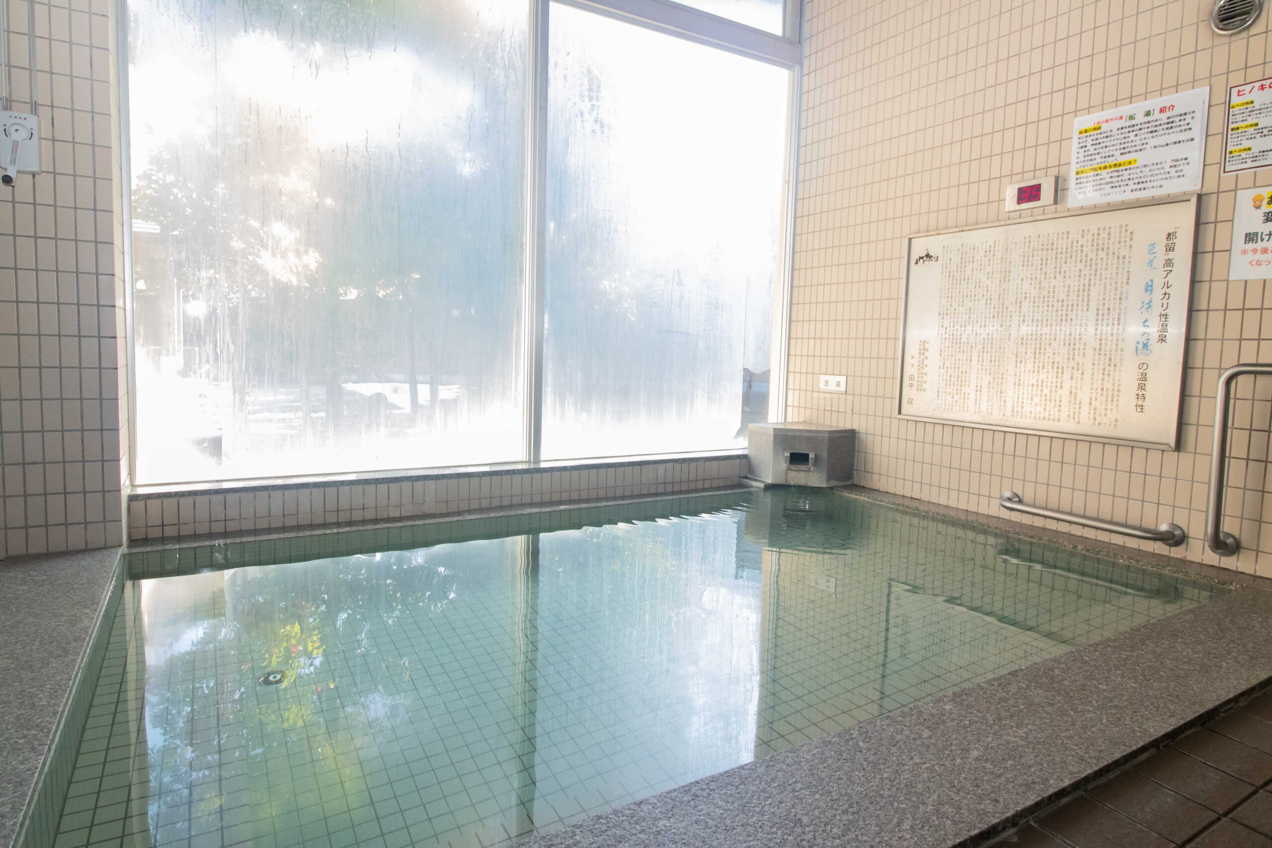温泉は高いアルカリ性で、「美肌の湯」として知られる泉質。