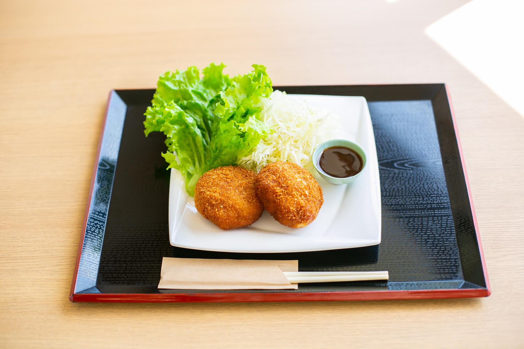 ※写真はレストラン「お勝手場」で提供しているメンチカツです。