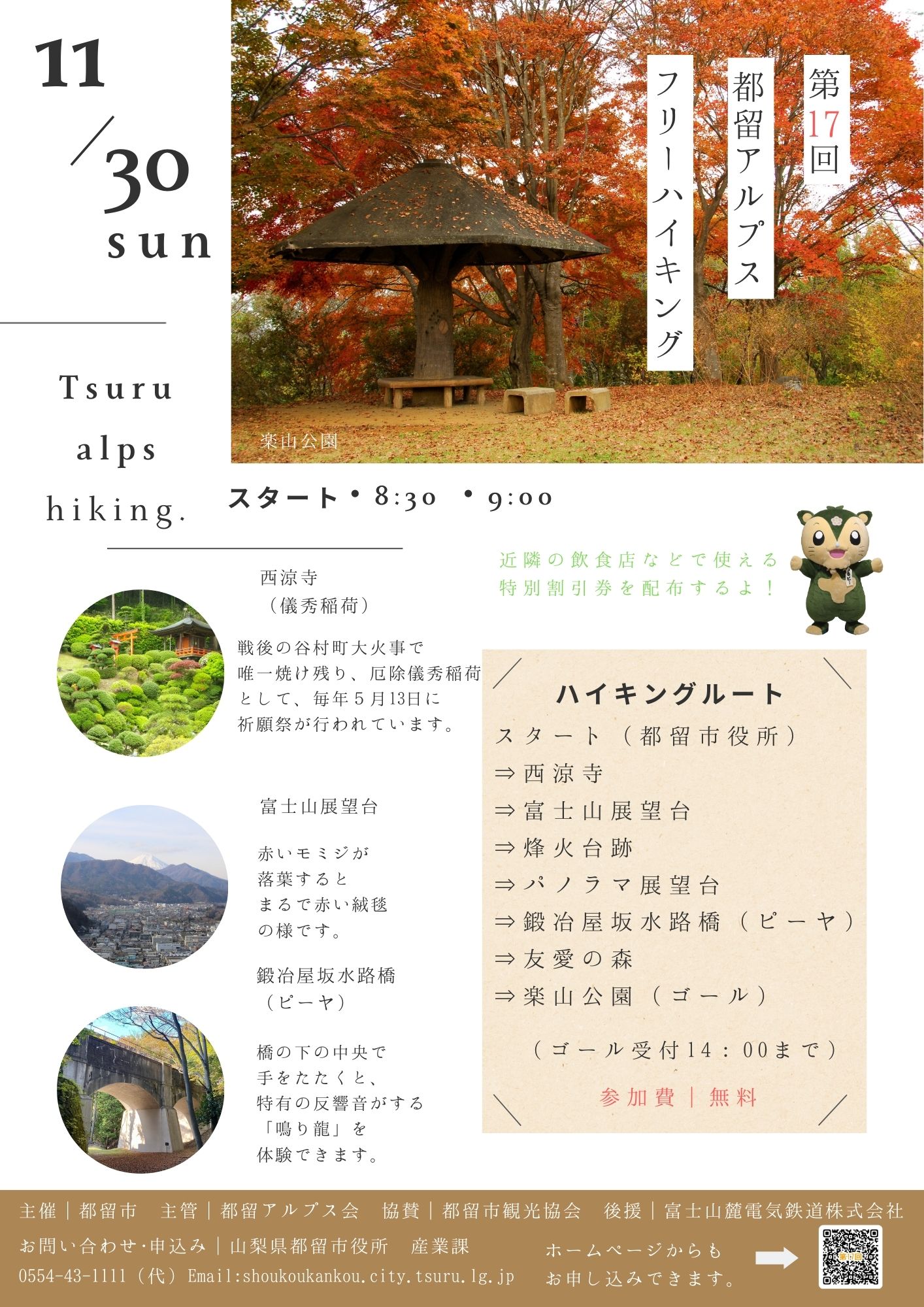 11月30日(日)に「第17回都留アルプスフリーハイキング」が開催されます!