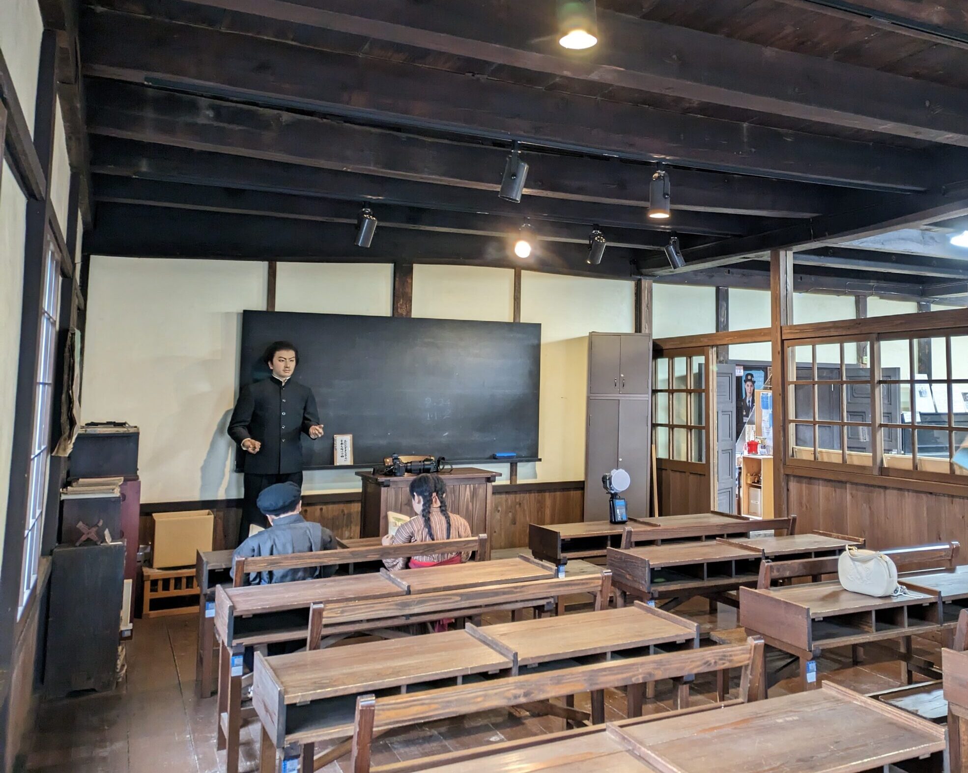 館内は明治期の教室が再現されており、タイムスリップして当時の学生になった気分になれます。お手玉・メンコ・ビー玉・竹とんぼなど昔の遊びも体験できます。地域の人々に愛されてきた建物を存分に味わおう!